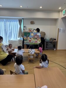 帰ってきた後は、汗をふいてもらいスッキリ!水分補給もしっかりして……なんと今日は特別大きな絵本を読んでもらいました〜😄