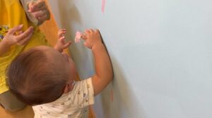 届くかな〜!と一生懸命手を伸ばしてシール剥がしに夢中なこあら組さんでした♡シール剥がすの楽しいね♩