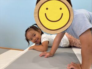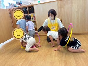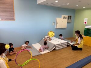 サーキット遊びをしました。マットの傾斜の登り降りやフラフープくぐり、平均台を渡ったりしました😊