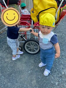 まだ歩けないお友だちもフェンスやカートにつかまり立ちして伝い歩きを楽しんでいました☺️