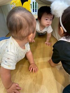 小さい子たちは、トンネルをくぐったり、不思議な迷路のを探索して……バァ👻 と保育者が顔を出すとキャッキャと喜んでいましたよ🎶