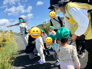 道中、どんぐりが落ちていると拾って嬉しそうな子どもたち^_^