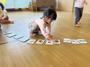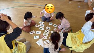 保育者の発した言葉に瞬時に反応して札を探す子どもたち👀見つかるかな??