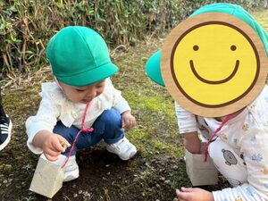 うさぎ組さん、こあら組さんは川沿いを1周お散歩した後、パークタウン内でどんぐり拾いを楽しみました♪
