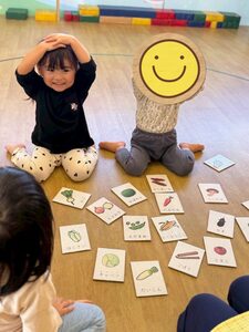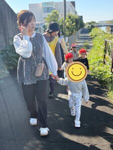 フルーツバスケットや絵カルタ遊びをした後にお母さんと対面‼︎手を繋いで一緒に川沿いをお散歩しました😊