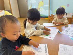 園に戻った後はぱんだ組さんはお絵描き、うさぎ組さんはシール貼り、こあら組さんはボール遊びをしました😊
