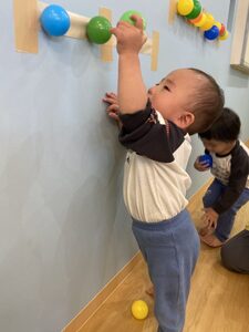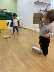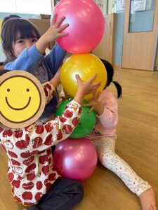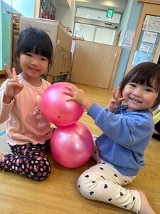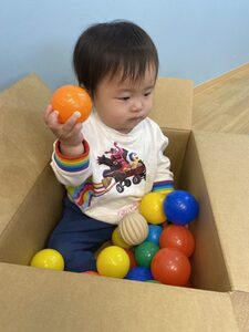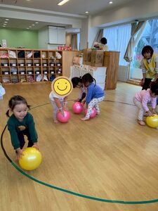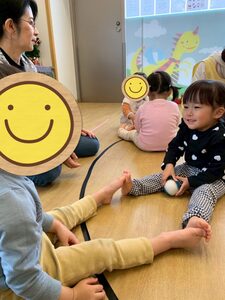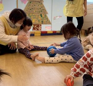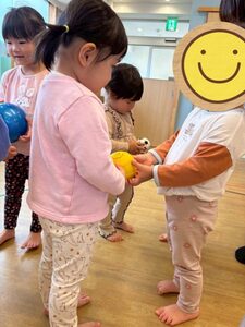 お友だちと向かい合わせになって「どうぞ‼︎」、「ありがとう‼︎」と言いながらボールの受け渡しをしました☺️
