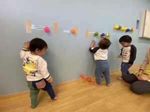 雪に見立てた大きいボールを転がして雪玉を作ったよ❄️