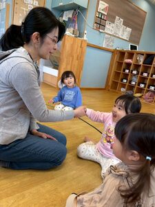 リトミックの先生と握手して「こんにちは‼︎」のご挨拶😊