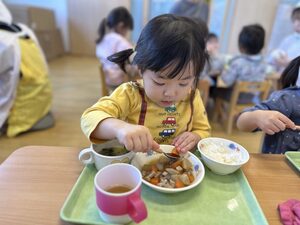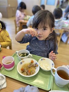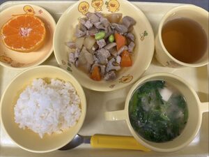 食育で触れた根菜が、給食で筑前煮として出ました!みんなモリモリ食べていましたよ😋