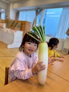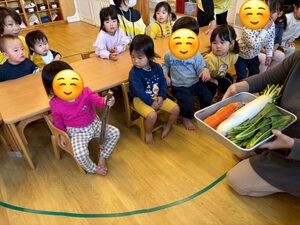 知っているお野菜を見ると「だいこん!」「ごぼう!」と張り切って答えてくれた子どもたち。