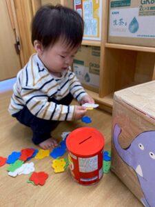 小さい子チームは、お絵描きやシール貼り、ポットン落としなどでじっくり遊びました💕