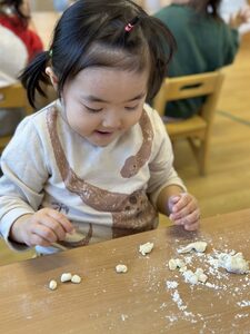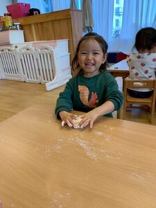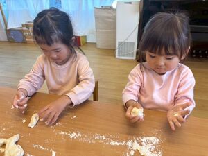 その後は、小麦粉粘土をお餅のように、伸ばしたりこねたりして感触を楽しみました😌💕