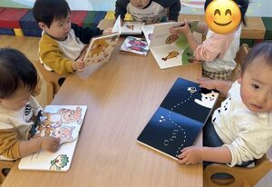 好きな絵本を選んでペラペラとページをめくり、絵に指をさして保育者に「みてみて〜」と教えてくれました♪