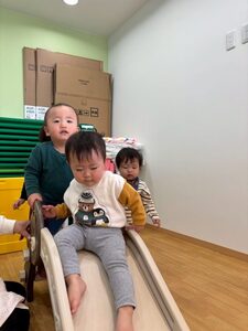 大好きな滑り台も順番守って遊べるかな??