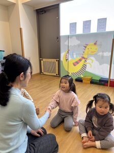 ポカポカで暖かい気候だったので子どもたちも座ってゆったり遊びました💕