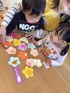 うさぎぐみ→こあらぐみの順番に1人ずつ心を込めて描いたお花をぱんだ組さんに渡しにいきました💕