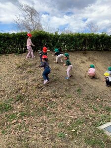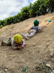 公園の土手をよじ登ったり、ずるずる…と滑り降りたり、砂や土だらけになって存分に遊びました♬