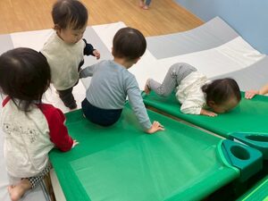 こあら組さんは運動あそび✌️コットで作った坂道をよじ登ったり、マットの上でジャンプをして身体を動かしてあそびました😄