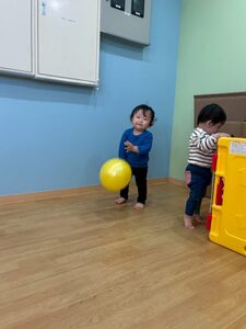 小さい子チームはボール遊びをしました。ボールを投げたり、蹴ったり、楽しそうでした😄