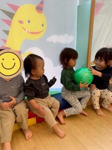 大きい子チームは体育遊びをしました。隣りのお友だちに「どうぞ‼︎」とボールを渡して行ったり、転がってくるボールに当たらないように逃げたりしました😊