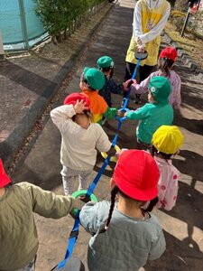 小さい子チームは、縄を両手で掴んでみんなで引っ張りあったり縄に触れて感触を楽しんだりしました!