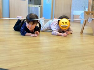 大きい子チームは、紐をくぐったり〜