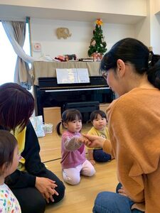 クリスマスにちなんで…ピアノに合わせて鈴を鳴らしたりクリスマスツリーポーズをしたりして身体をたくさん動かしました♡