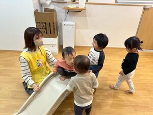 小さい子たちは滑り台や、棚おもちゃでお友達との関わりを楽しみながらゆったり過ごしました🥰