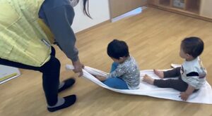 先生に引っ張ってもらうと「わぁ♡進んだぁ!」とニコニコで嬉しそうな子どもたちでした🥰