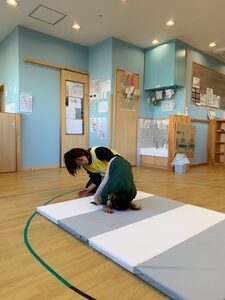 初めての子もお友だちを見てやり方を習得したり何度も先生とやっていくうちに1人で前転が出来るようになっていました👍🏻😊