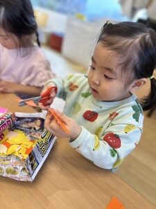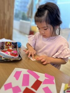 ハサミ✂️や糊付けに挑戦!とても真剣な表情で取り組んでいました。完成が楽しみです♪