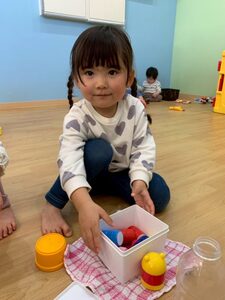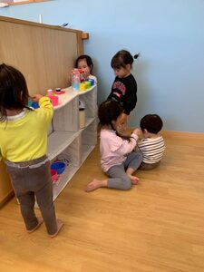 棚玩具で指先を使った遊びを楽しんだり、ごっこ遊びに発展させたり・・・